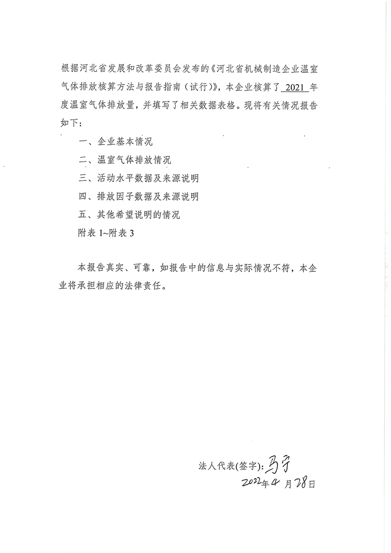 2021年度河北省機械制造企業(yè)溫室氣體排放報告