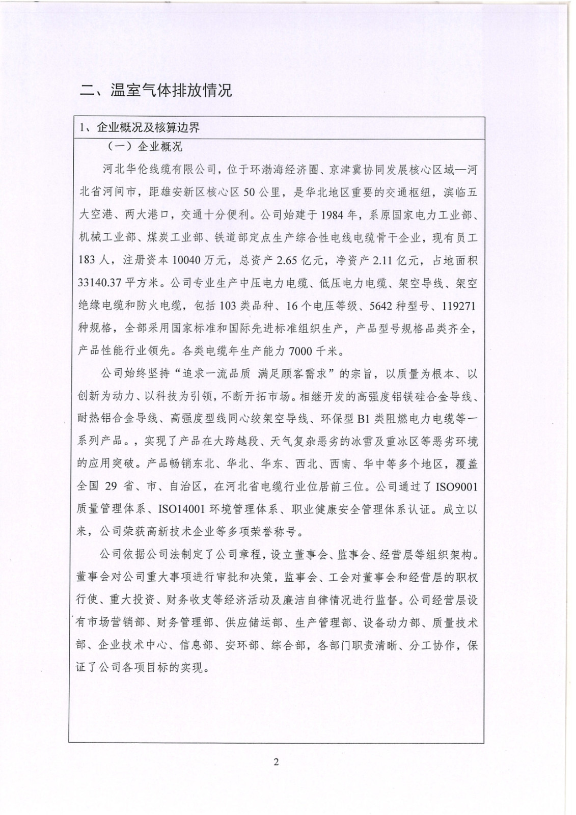 河北華倫線纜有限公司2022年溫室氣體排放報告及改善計劃